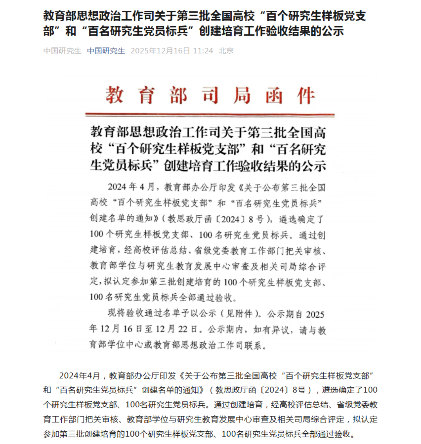 喜讯!学院研究生第四党支部顺利通过 全国“百个研究生样板党支部”创建培育工…