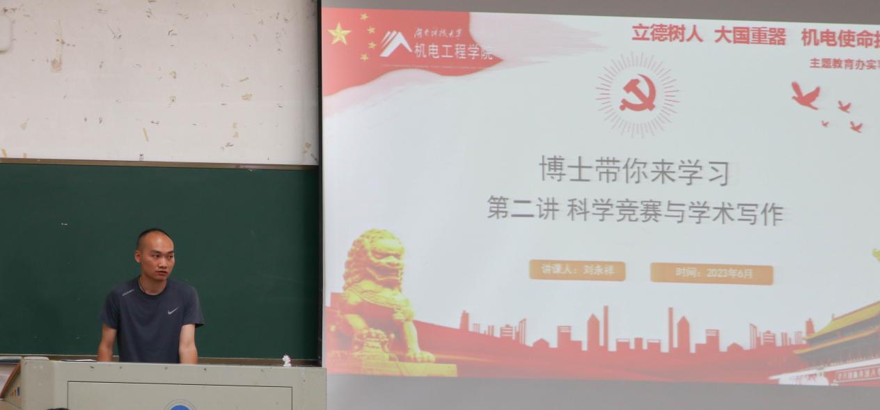 为推进立德树人 大国重器 机电使命担当党建品牌走深走实,扎实落实主题教育办实事项目落地生根,让一支部一品牌支部建设更好的为民服务,5060全迅白菜研究生四支部推出的“博士带你来学习”支部服务活动6月16日下午在五教2-3顺利启动。5060全迅白菜党委副书记(兼任研究生四支部支部书记)杜鑫主持,我院两位优秀优秀博士生刘广平、刘永祥担任主讲,22级机设专业全体本科生与辅导员姜彦出席本次活动。