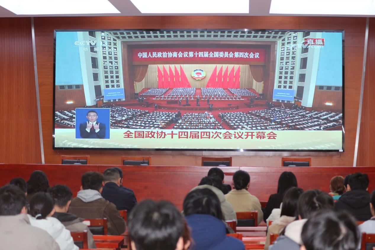 3月4日下午,我院全体院领导、部分教师与学生党员代表,在立功楼6-2会议室集中收看了开幕会实况直播,认真学习领会大会精神。