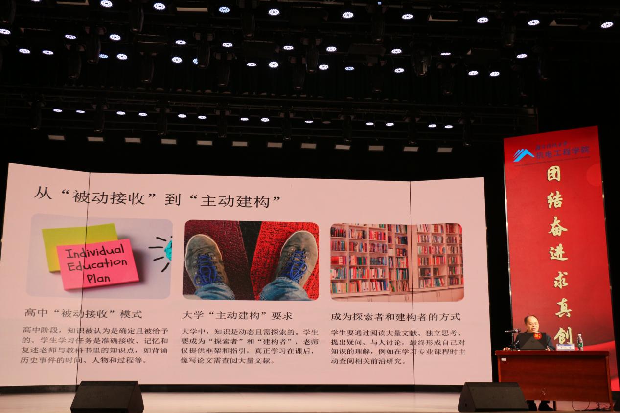 大会第二阶段,进入入学教育。牛秋林以“认知转变与决策智慧”为主题开展讲座,指导新生从被动学习转向主动规划,系统剖析目标制定、转专业等十一类大学关键决策,并结合案例传授科学方法,强调“选择与努力同等重要”,鼓励新生积极求助师长、培养良好心态。