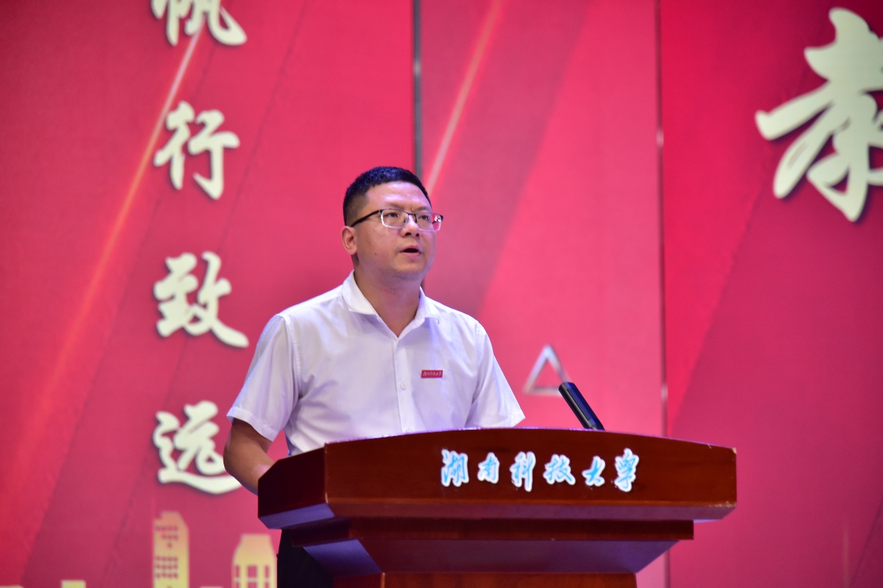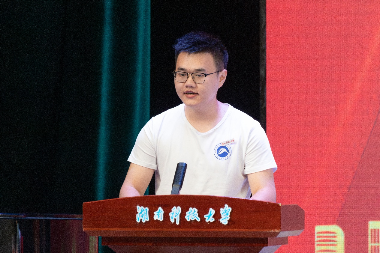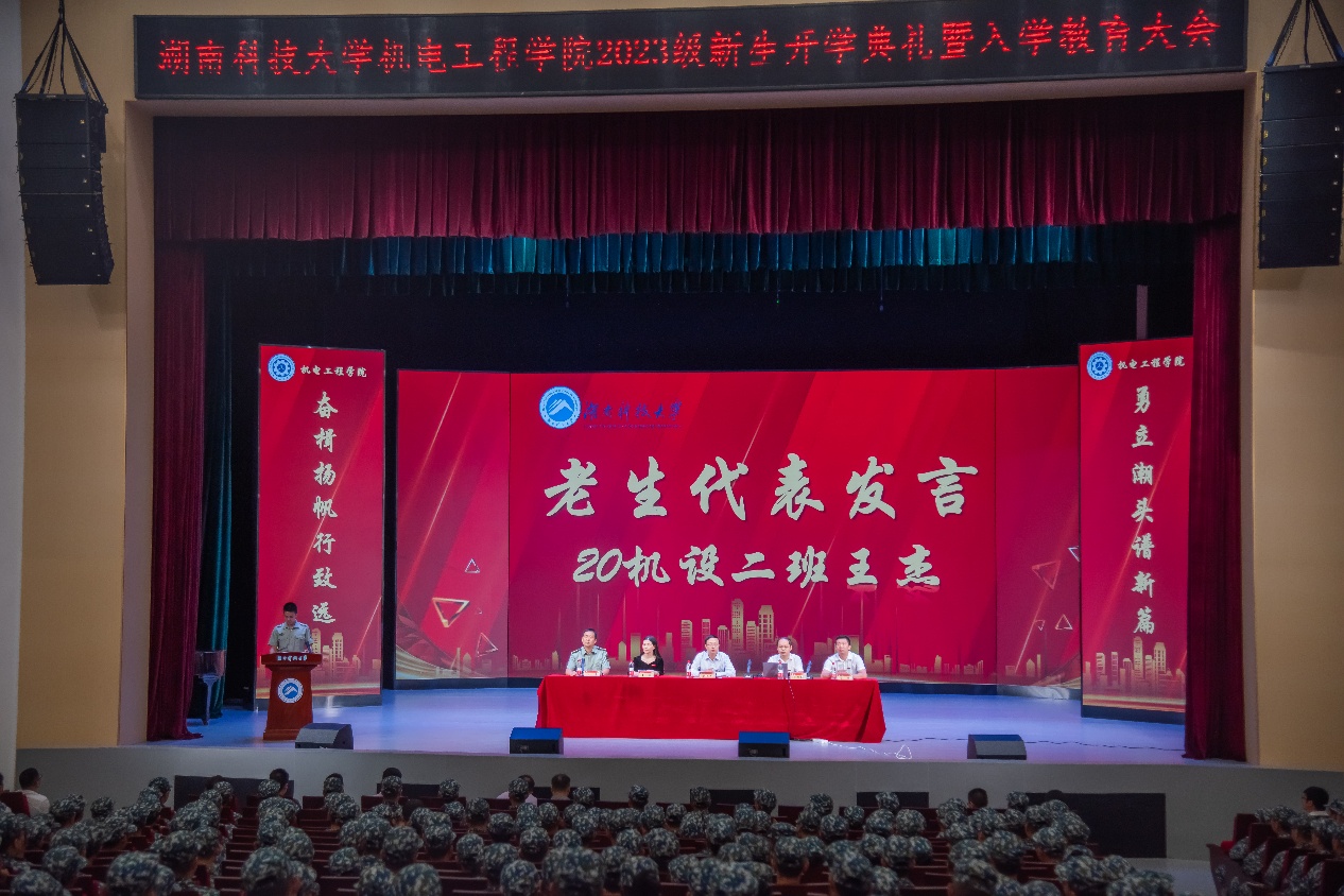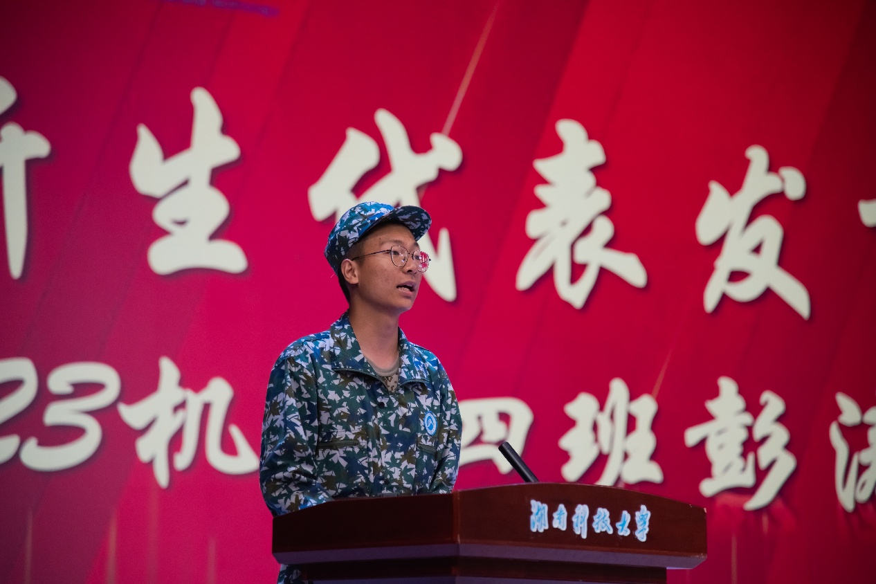 高年级学生代表20级机械设计制造及其自动化二班退伍军人王杰向同学们分享了自己的经历与感悟,告诉新生们在面对迷茫时,要找到属于自己的方向,不能轻言放弃。他也倡导同学们向“时代楷模”万步炎学习,立志报国,为祖国事业贡献青春力量。